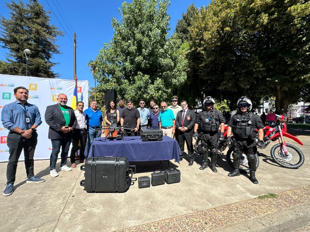Mejorar las capacidades de los funcionarios de seguridad municipal y avanzar en una mayor presencia estatal serán parte de las mejoras que tendrá la comuna de Mulchén en la Región del Biobío, tras la reciente entrega e inauguración por parte de las autoridades locales de dos nuevas motocicletas para realizar patrullajes preventivos y un nuevo dron de televigilancia móvil, los cuales se sumarán a los recursos ya existentes en la comuna para prevenir el delito y entregar mejores condiciones de seguridad a los vecinos y vecinas de la zona.